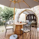 Goście mogą korzystać z udogodnień multimedialnych, takich jak PC i telewizja wielokanałowa, a także klimatyzacja. Oprócz sofy i biurka do pracy, we wnętrzu znajduje się kamienny kominek. W łazience znajdują się bidet, kabina prysznicowa walk-in i oddzielna toaleta, suszarka do włosów i ręczniki kąpielowe.